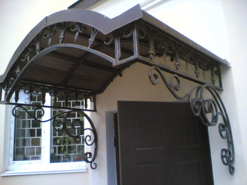 Кованый козырек с изогнутой крышей