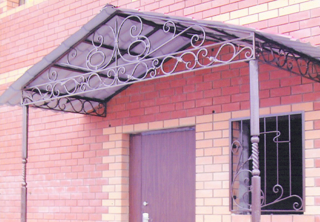 Козырек из поликарбоната с элементами ковки. Цена указана за козырек без подпорных столбов размером 1*1м с полимерным покрытием, рама козырька выполнена из трубы профильной 20*20мм, кованые элементы из квадрата 10мм, зашит прозрачным сотовым поликарбонатом толщиной 10мм. Стоимость козырька другого размера, монтажа и доставки уточняйте отдельно у менеджеров компании.