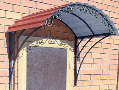Козырек из листа металла с элементами ковки. Цена указана за козырек размером 1*1м с полимерным покрытием, рама козырька выполнена из трубы профильной 20*20мм, кованые элементы из квадрата 10мм, зашит листом металла толщиной 2мм. Стоимость козырька другого размера, монтажа и доставки уточняйте отдельно у менеджеров компании.