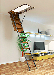 Укомплектована утеплённой крышкой люка (толщина крышки с утеплителем — 36мм), облицованной ДВП древесного цвета.
