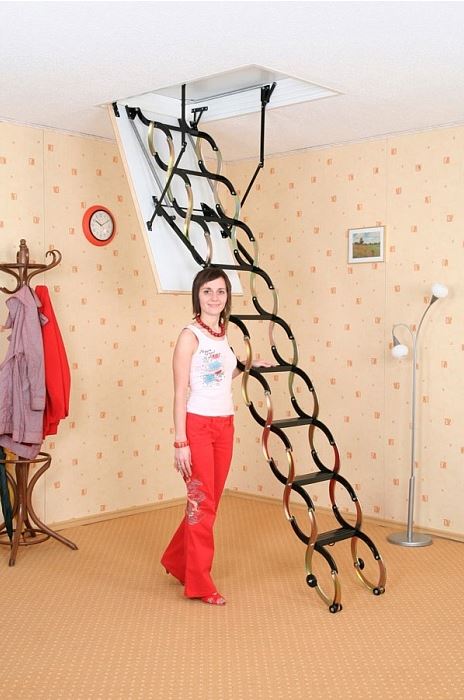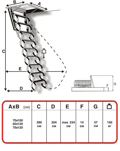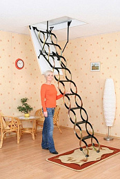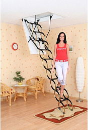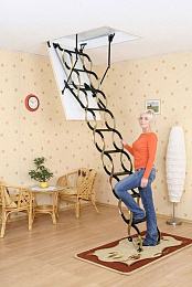Все элементы лестницы выполнены из экологически чистых материалов и обработаны веществами, не содержащими тяжелых металлов. На ступенях антискользящие насечки. Короб лестницы деревянный. Термоизоляционная крышка типа "сэндвич", толщиной 30 мм, утеплена пенопластом, облицована с двух сторон ДВП белого цвета. Короб люка с уплотнителем, высотой 140 мм. В комплекте деревянный стержень для открывания лестницы