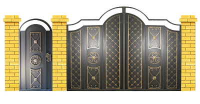 Эффектно смотрится ажурный узор на воротах, зашитых металлическим листом. Кованые изделия являются не только украшением дома или участка , но и выполняют функцию защиты и обеспечения безопасности жильцов.