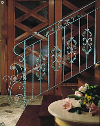 Металлическое кованое ограждение для лестниц, покрыто патиной.