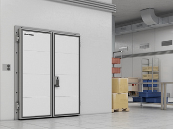 Среднетемпературные и низкотемпературные распашные двустворчатые двери IsoDoor IDH2 предназначены для организации входных групп холодильных и морозильных камер на складах, в терминалах и логистических центрах, на предприятиях пищевой промышленности, торговли и пищевого ретейла.