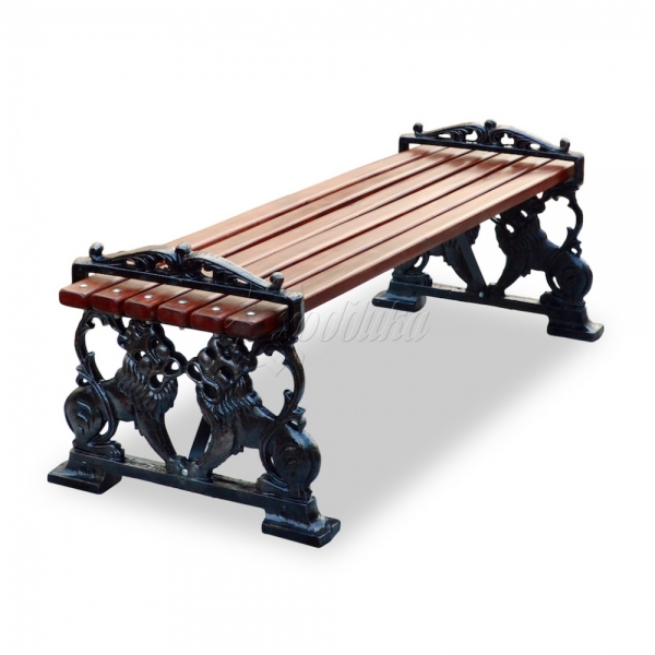 Чугунная парковая скамья без спинки "Львы" очень красиво смотрится вдоль линии высадки деревьев и парковых аллей. Банкетка может использоваться как в саду, так и в торговом центре, возле раздевалок театра или любом другом общественном месте.