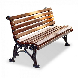 Удобная садовая скамейка без подлокотников с опорами из чугунного литья. Опоры покрыты стойким полимерным покрытием.