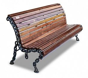 Оригинальная скамейка "Лукоморье" с опорами из сваренных между собой звеньев цепи. Несмотря на кажущуюся воздушность скамейка достаточно прочна для комфортного сидения. Дизайн скамейки отлично подойдет всем любителям морской тематики ,а также для оформления набережных и тематических мест.