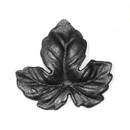 Лист виноградный, литой, сталь. Широко используется в кованых изделиях с растительным орнаментом - лестничных ограждениях, кованых кроватях, кованых воротах и заборах, кованых решетках. Применяется в паре с виноградным листом арт. 1160 и виноградными грозьдями.