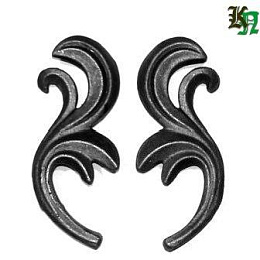 Листья литые, сталь. Широко используется в кованых изделиях с растительным орнаментом - лестничных ограждениях, кроватях, воротах и заборах, решетках.