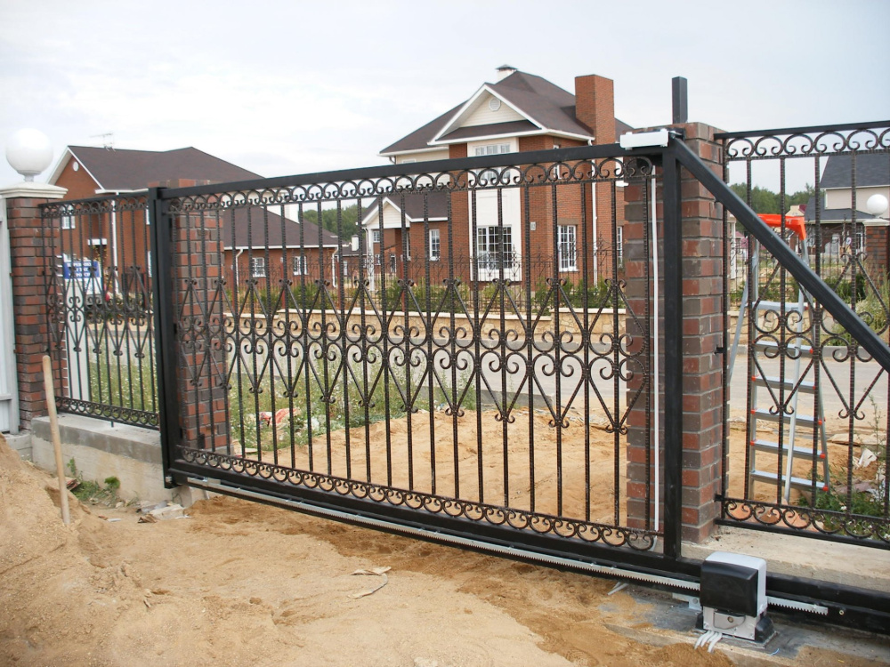 Автоматические откатные ворота (покраска черной краской по металлу) вместе с силовой рамой