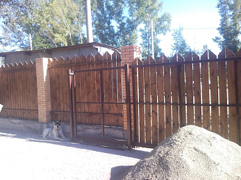 • Каркас ворот, силовая рама и три столба покрашены черной краской по металлу.