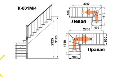Лестница Высота от пола нижнего этажа до пола верхнего этажа: 3120 мм