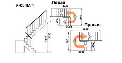 Лестница Высота от пола нижнего этажа до пола верхнего этажа: 3120 мм