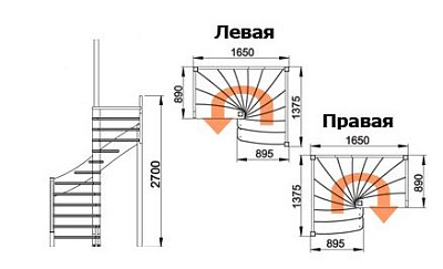 Высота от пола нижнего этажа до пола верхнего этажа: 2700 мм
